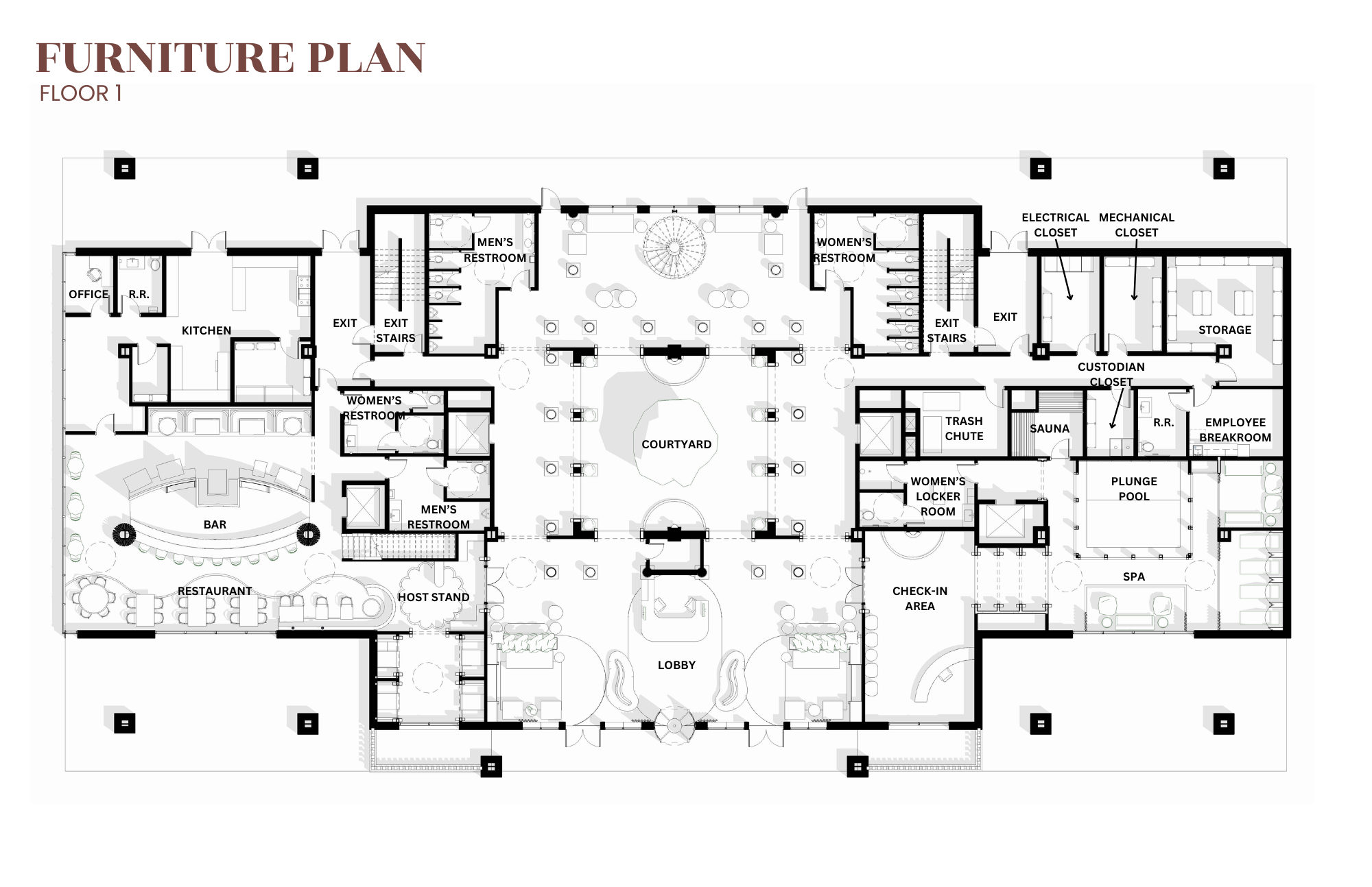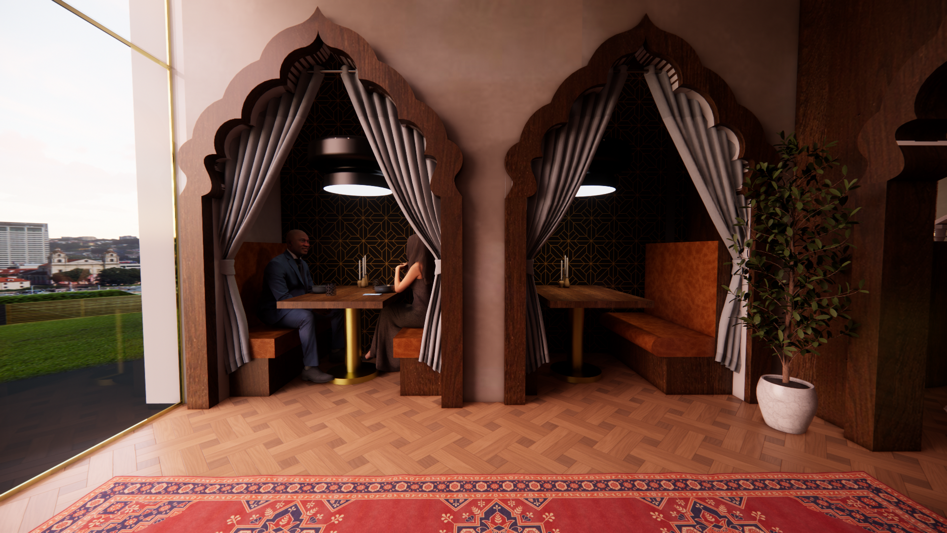Hotel Rahana was developed through a collaborative design process, with key components such as the overall floor plan, construction documents, and courtyard details created as a team. Individual spaces, including the lobby and restaurant, were developed independently, allowing for focused design exploration within the larger unified concept.