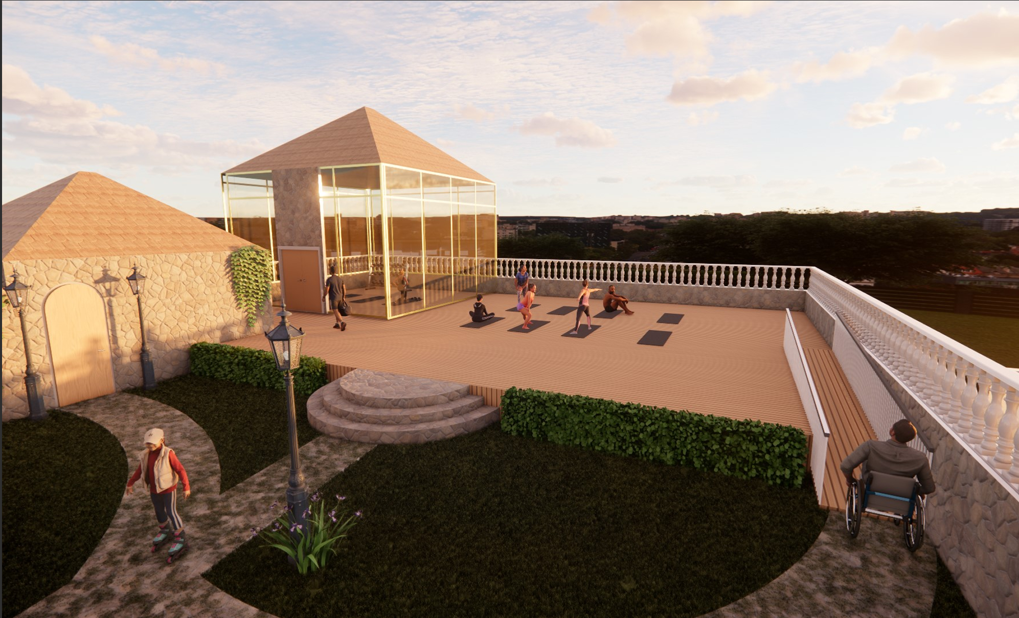 The rooftop is designed as a landscaped nature walk for guests, creating a calm transition between indoor and outdoor spaces and incorporating an indoor–outdoor yoga studio. It also includes accessible prayer rooms to respectfully honor cultural traditions, especially considering that over 90% of visitors to Agra are domestic travelers.