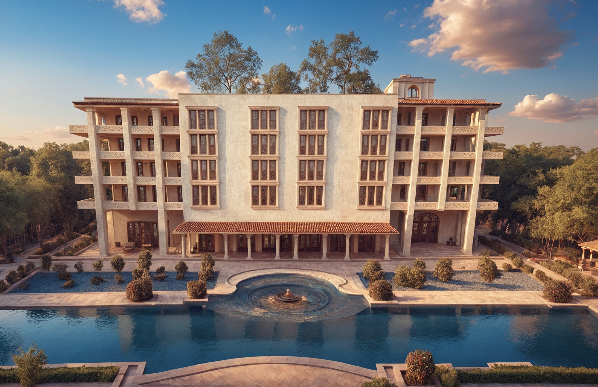 Hotel Rahana is located in Agra, India just off the main road and in close proximity to the Taj Mahal. The design integrates LEED and WELL standards, emphasizing biophilic principles and energy efficiency while honoring local cultural traditions and practices. Respect for heritage, environment, and community remains central to the overall design approach.